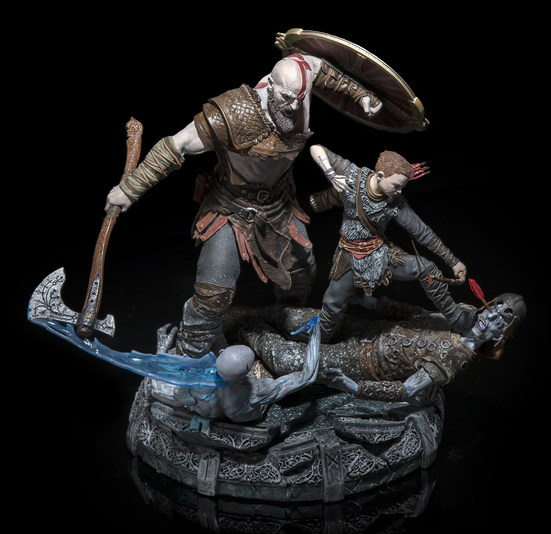 Du coup, comme prévu on retrouve la figurine de Kratos et son fils Atreus en plein fight d’environ 23cm de haut. Et comme pour le collector de Uncharted 4 ou Horizon Zero Dawn c’est une nouvelle fois le fabricant Gentle Giant qui s’occupe de la réalisation, autant dire que cela présage que du bon niveau qualité.