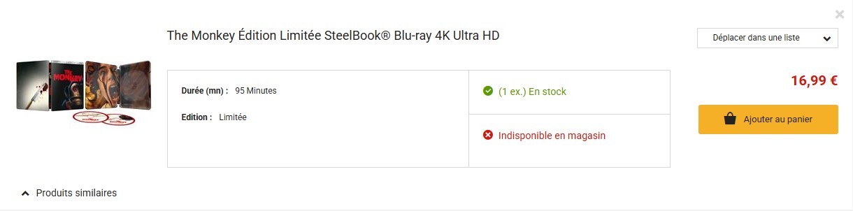 Le steelbook du film The Monkey en blu-ray + blu-ray 4K est en promo à 17€ sur la Fnac (au lieu de 35€)