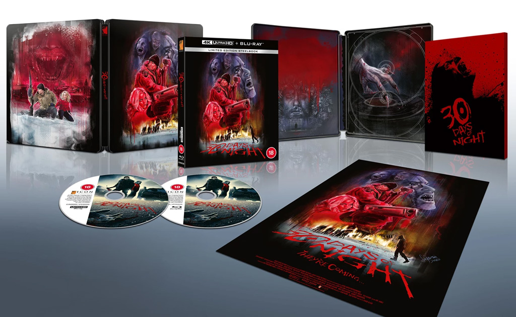 Description éditeur : Le classique culte du film de vampires, tiré du roman graphique révolutionnaire, est de retour ! Disponible pour la toute première fois en résolution 4K époustouflante et en profondeur de couleur 16 bits – offrant une expérience visuelle améliorée avec des détails inédits – l’édition limitée UHD SteelBook présente des illustrations exclusives et magnifiques de l’artiste Suspiria Vilchez et contient 6 heures de contenu bonus, dont de nouveaux commentaires audio et des interviews, ainsi qu’un livret imprimé et une affiche.