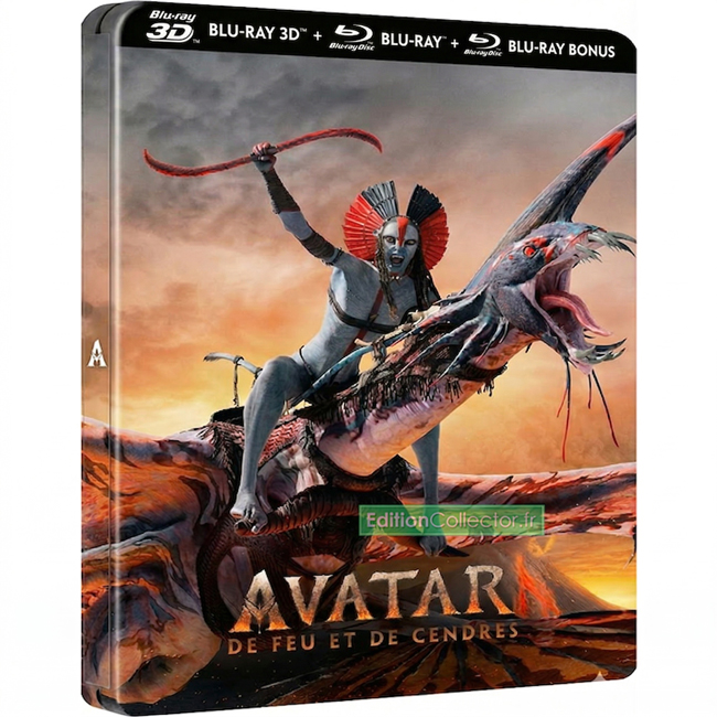 AmazonUK vient de mettre en ligne un steelbook 3D pour le film Avatar 3 : De Feu et de Cendres, reste à confirmer s'il le visuel sera identique au steelbook blu-ray 4K ou différent...