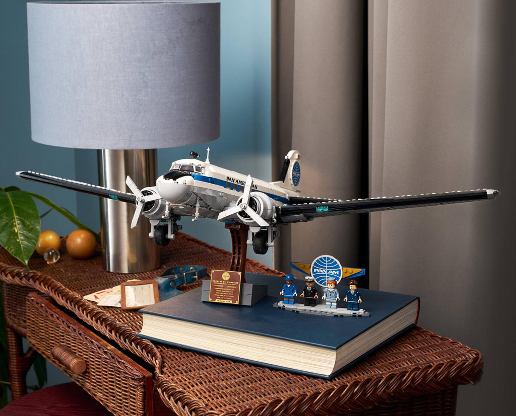 – La maquette du DC-3 inclut un support avec plaque descriptive, ainsi qu'un présentoir à construire avec le logo de la Pan Am pour exposer les minifigurines : pilote, agent de bord, hôtesse de l'air et chef de cabine