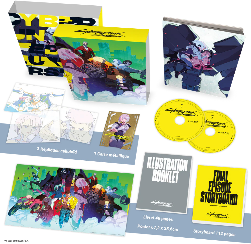 - Livret 48 pages (illustrations des personnages, des accessoires et des décors de Night City, un guide des épisodes, une sélection d'images clés de l'animation et une interview du réalisateur de la série, Hiroyuki Imaishi)