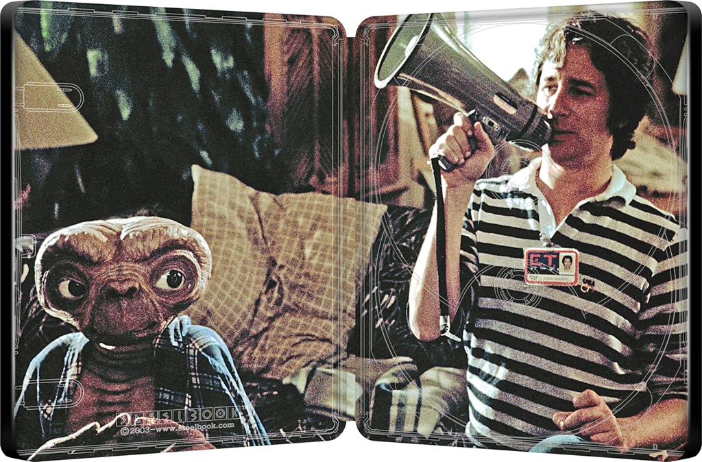 Synopsis : Une soucoupe volante atterrit en pleine nuit près de Los Angeles. Quelques extraterrestres, envoyés sur Terre en mission d'exploration botanique, sortent de l'engin, mais un des leurs s'aventure au-delà de la clairière où se trouve la navette. Celui-ci se dirige alors vers la ville. C'est sa première découverte de la civilisation humaine. Bientôt traquée par des militaires et abandonnée par les siens, cette petite créature apeurée se nommant E.T. se réfugie dans une résidence de banlieue. Elliot, un garçon de dix ans, le découvre et lui construit un abri dans son armoire. Rapprochés par un échange télépathique, les deux êtres ne tardent pas à devenir amis. Aidé par sa soeur Gertie et son frère aîné Michael, Elliot va alors tenter de garder la présence d'E.T. secrète.