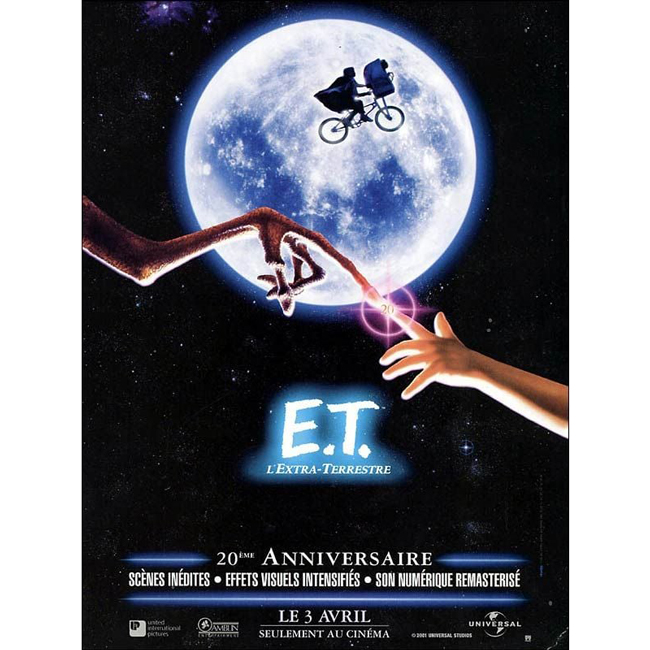 Synopsis : Une soucoupe volante atterrit en pleine nuit près de Los Angeles. Quelques extraterrestres, envoyés sur Terre en mission d'exploration botanique, sortent de l'engin, mais un des leurs s'aventure au-delà de la clairière où se trouve la navette. Celui-ci se dirige alors vers la ville. C'est sa première découverte de la civilisation humaine. Bientôt traquée par des militaires et abandonnée par les siens, cette petite créature apeurée se nommant E.T. se réfugie dans une résidence de banlieue. Elliot, un garçon de dix ans, le découvre et lui construit un abri dans son armoire. Rapprochés par un échange télépathique, les deux êtres ne tardent pas à devenir amis. Aidé par sa soeur Gertie et son frère aîné Michael, Elliot va alors tenter de garder la présence d'E.T. secrète.