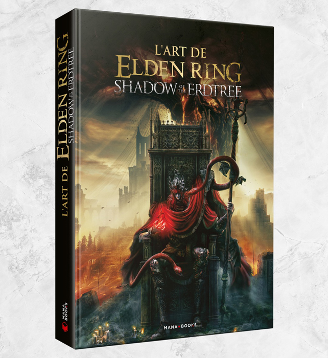 Description éditeur : L’équipe de Mana Books attendait avec impatience de vous annoncer l’arrivée dans son catalogue de l’artbook officiel L’art de Elden Ring – Shadows of the Erdtree ! Cet opus viendra ainsi enrichir sa collection de beaux livres autour de l’incroyable univers de dark fantasy imaginé par Hidetaka Miyazaki et George R. R. Martin. Consacré au spectaculaire DLC du même nom, L’art de Elden Ring – Shadows of the Erdtree vous invite à vous perdre dans le Royaume des ombres… Paysages et donjons maudits, équipements et armes fascinantes, monstres et chimères insondables : laissez vos yeux contempler les splendides graphismes que renferme cette extension !