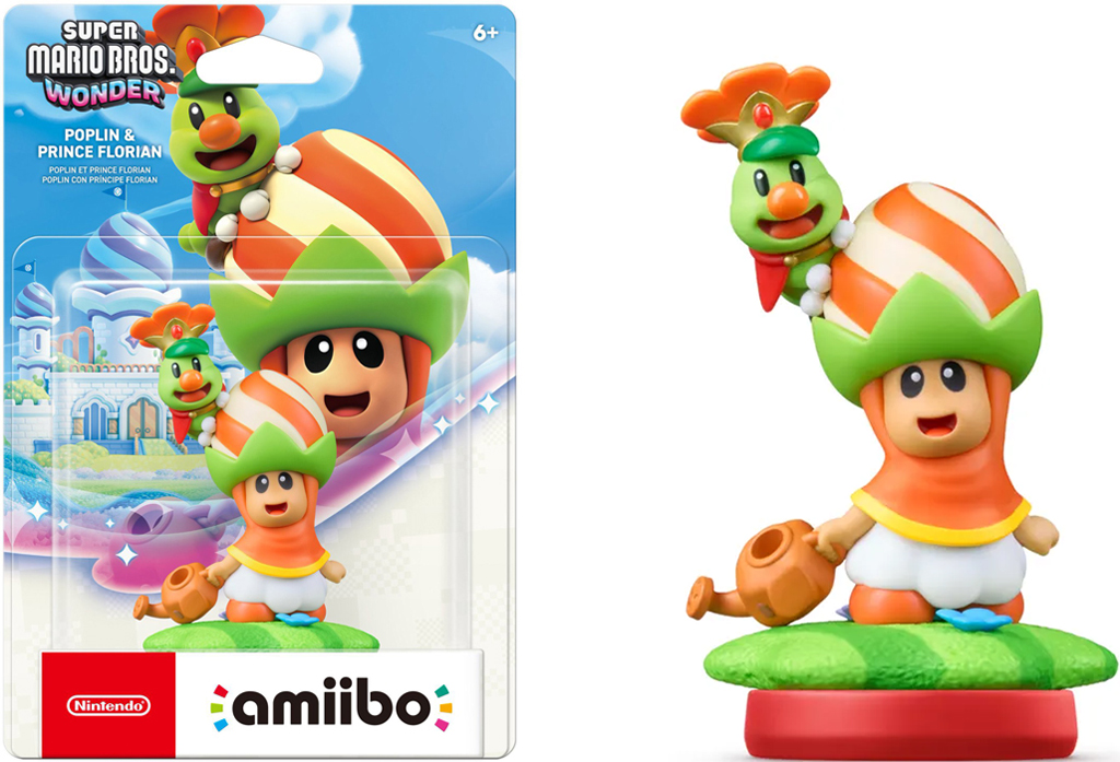 La figurine amiibo Poplin et Prince Florian dans le jeu Super Mario Bros. Wonder est dispo en précommande à 17€ sur Auchan
