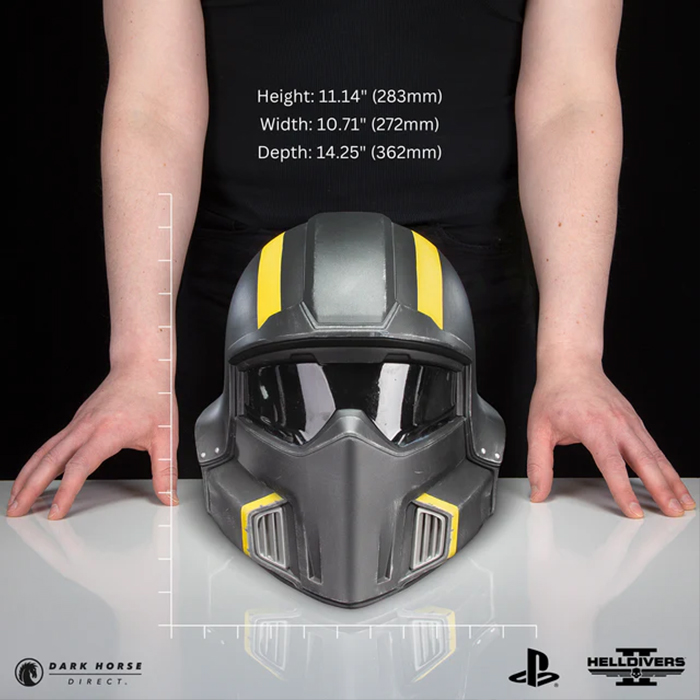 Description éditeur : Dark Horse et Arrowhead Game Studios sont ravis de vous aider à répandre la démocratie gérée à travers la galaxie grâce à la réplique à l'échelle 1:1 du casque tactique B-01 de Helldivers 2 ! Fraîchement sorti de l'entraînement de base ? Faites votre devoir et jurez fidélité à Super Earth tout en apportant le look emblématique du B-01 à votre collection de Super Destroyers ou à votre cosplay personnalisé. Conçu avec une fidélité parfaite au jeu, ce casque léger arbore les deux bandes jaunes emblématiques, une visière teintée transparente, un rembourrage intérieur et l'insigne du crâne des Helldivers.