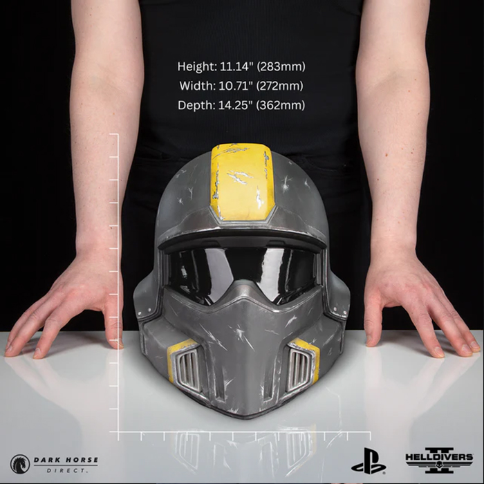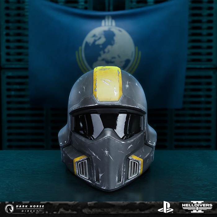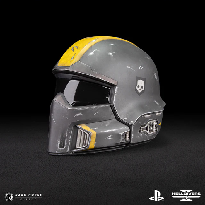 Description éditeur : Dark Horse et Arrowhead Game Studios sont ravis de proposer le meilleur des Helldivers, la réplique à l'échelle 1:1 du casque Helldivers 2 B-01 Tactical (Battle Damaged) ! Pour les Helldivers qui ont combattu en première ligne à Malevelon Creek ou défendu Super Terre tout en propageant une démocratie contrôlée, ce casque rend hommage à votre bravoure. Le B-01 V4 présente des marques d'usure dues aux combats, une bande jaune vif, une visière teintée transparente, un rembourrage intérieur et l'insigne du crâne des Helldivers.
