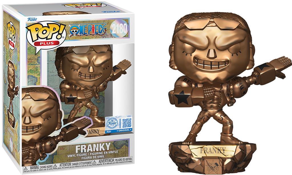 Description éditeur : Célébrez les nombreuses aventures de One Piece en enrichissant votre collection avec cette figurine POP! Plus exclusive de Franky ! Cette figurine imposante représente Franky, au fini bronze métallisé, perché sur un rocher orné de son nom. Offrez à ce pirate un abri digne de ce nom et accueillez-le dans votre collection d'anime. Cette figurine de collection, au fini bronze, fait partie d'une série de 10. Elle est livrée dans un emballage protecteur POP! en plastique premium anti-UV, idéal pour la préserver des dommages.