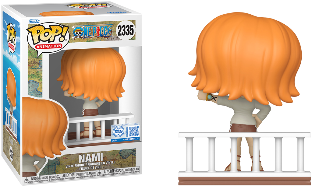 Description éditeur : Dites adieu à la princesse Vivi en compagnie des Pirates du Chapeau de Paille ! Dos à la rambarde et bras levé, la figurine POP! Nami est là pour compléter votre collection One Piece . Créez une scène mémorable en exposant cette figurine POP! Nami exclusive aux côtés de ses amis pour recréer le pont du Vogue Merry.