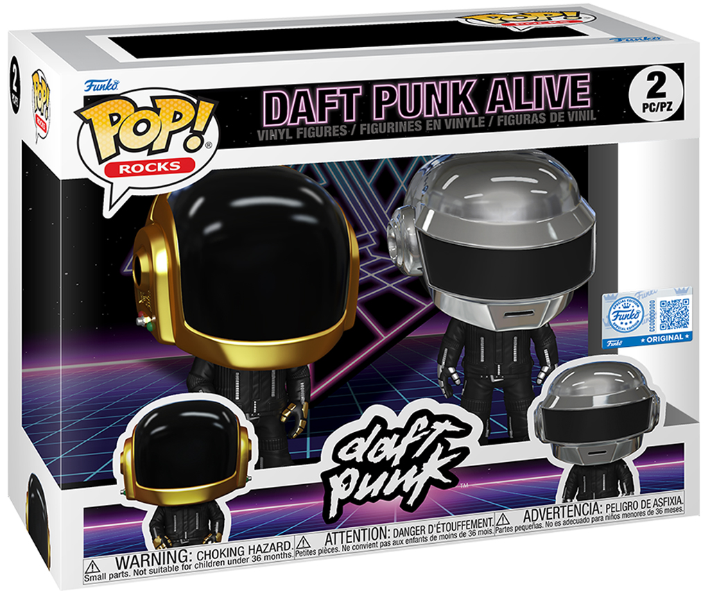 Description éditeur : Le groupe électro français Daft Punk™ débarque dans votre collection avec les figurines POP! Guy-Manuel de Homem-Christo et POP! Thomas Bangalter ! Créez une expérience musicale inoubliable en ajoutant ce pack exclusif POP! Daft Punk Alive de 2 figurines à votre collection POP! Rocks.