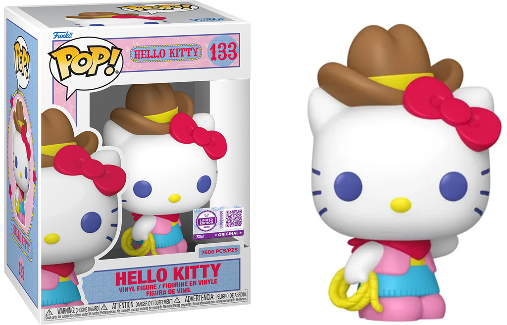 Description : Réunissez vos amis et accueillez cette figurine POP! Hello Kitty™ exclusive dans votre collection Hello Kitty® et ses amis, vêtue d'une tenue de cowgirl éclatante ! Cette adorable figurine POP! Hello Kitty™ apportera une touche de fantaisie à votre collection Sanrio ! Seulement 7 500 exemplaires de cette édition limitée ELITE ont été produits !