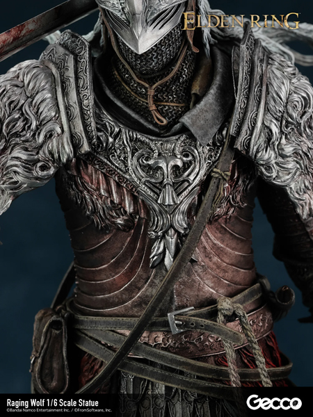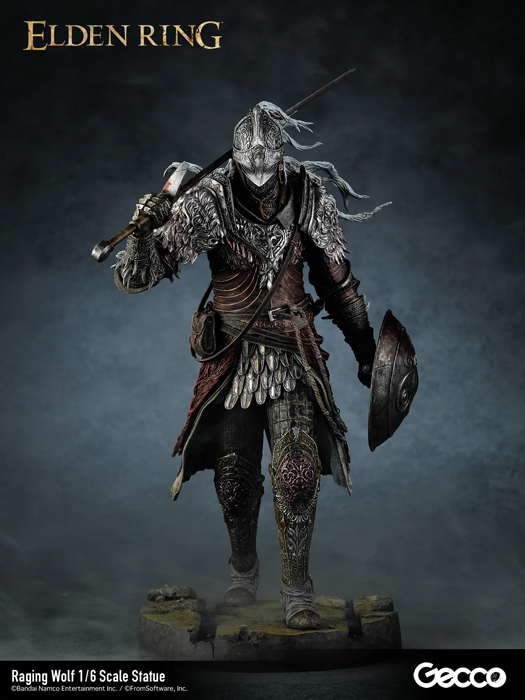 Description : Issu de l’action-RPG ELDEN RING, le Sans‑Éclat équipé de l’emblématique armure du Loup Enragé est recréé sous la forme d’une statue à l’échelle 1/6. Cette pièce représente le Sans‑Éclat errant à travers les terres sauvages, les cheveux balayés par un vent puissant, tout en dégageant une présence intimidante qui incite quiconque à garder ses distances. Sous la supervision complète de FromSoftware, chaque détail a été fidèlement reproduit grâce à un travail expert de sculpture et de peinture : de la texture rigide de l’armure métallique à l’usure réaliste du cuir, en passant par les cicatrices et les traces qui racontent l’histoire de nombreux combats féroces. Le socle est inspiré du pavage de pierre menant au château de Voilorage (Stormveil Castle), faisant de cette statue une pièce qui capture parfaitement l’atmosphère unique des Terres Intermédiaires