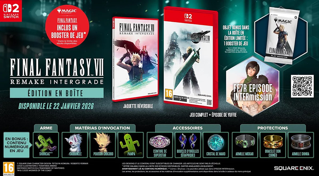 Le jeu Final Fantasy VII Remake Intergrade sur Switch 2 (carte clé de jeu) est en promo à ~38€ sur Amazon (au lieu de de 50€)