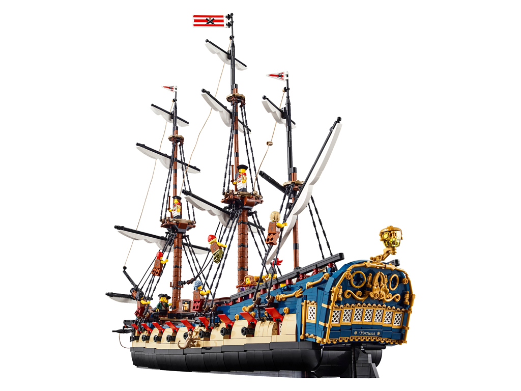 Description éditeur : Embarquez pour un voyage épique à bord de la frégate corsaire Fortuna, un navire de guerre du XVIIIe siècle rapide et élégant, conçu pour des expéditions audacieuses et l'aventure en haute mer. Ce superbe modèle de 4 000 pièces est sans doute la création LEGO la plus fidèle à l'histoire des frégates de la fin de l'âge d'or de la piraterie. Qu'elle trône fièrement au centre de votre collection, qu'elle soit intégrée à un diorama de pirates plus vaste ou qu'elle serve de vedette dans un film d'animation image par image, Fortuna est époustouflante sous tous les angles. En l'observant de près, vous découvrirez une multitude de techniques de construction innovantes et souvent uniques, ainsi qu'un niveau de détail et de finition extraordinaire.