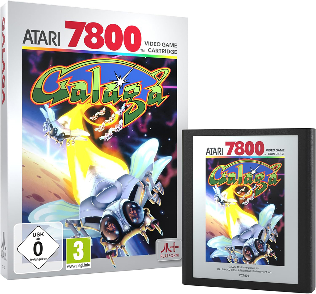 Description éditeur : Commandez votre chasseur stellaire contre des vagues de formations extraterrestres agressives, esquivez le feu ennemi et capturez des bonus pour augmenter votre puissance de feu. Rapide et addictif, Galaga offre une excitation classique de combat spatial pour les joueurs en quête de défis et de divertissement sans fin. Cartouche de jeu compatible avec les consoles Atari 2600+, Atari 7800+ et Atari 7800.