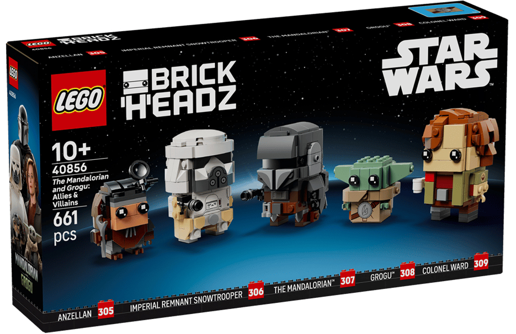 – Les figurines LEGO Star Wars BrickHeadz du Mandalorien, de Grogu, de la Colonelle Ward, d’un Snowtrooper membre des Vestiges impériaux et d’un Anzellan dotés d’accessoires réalistes