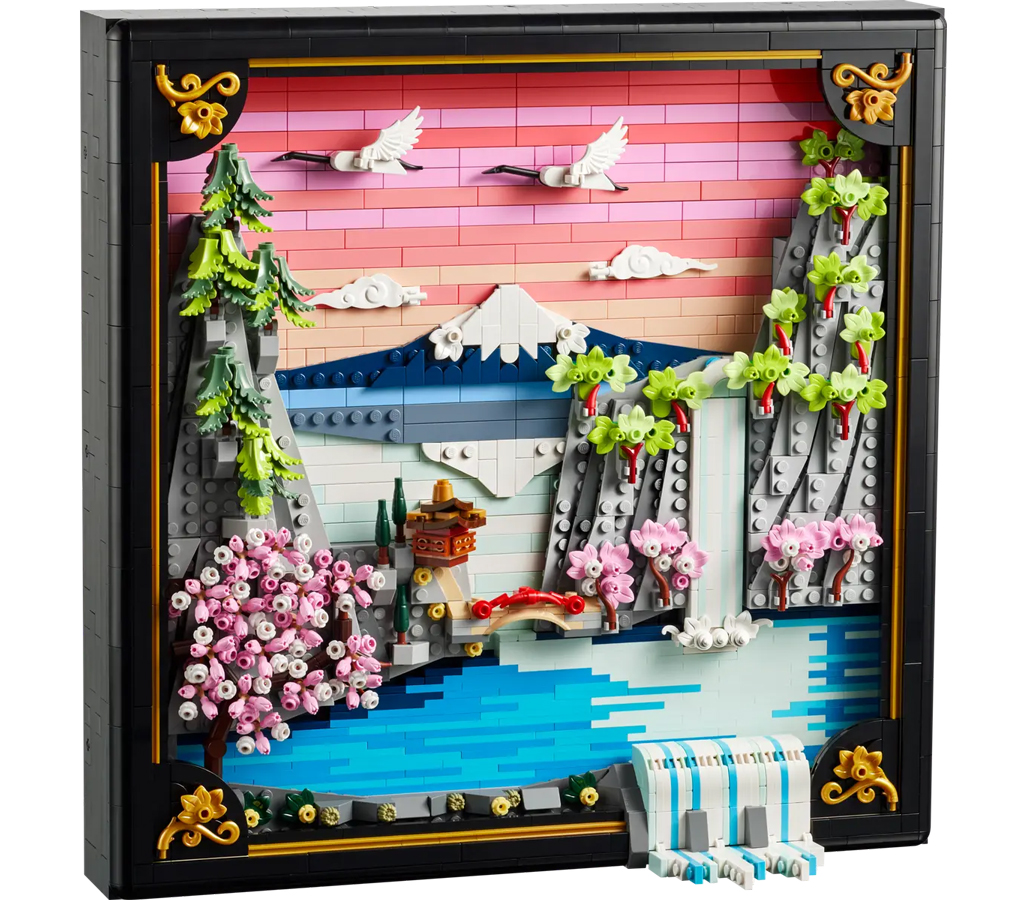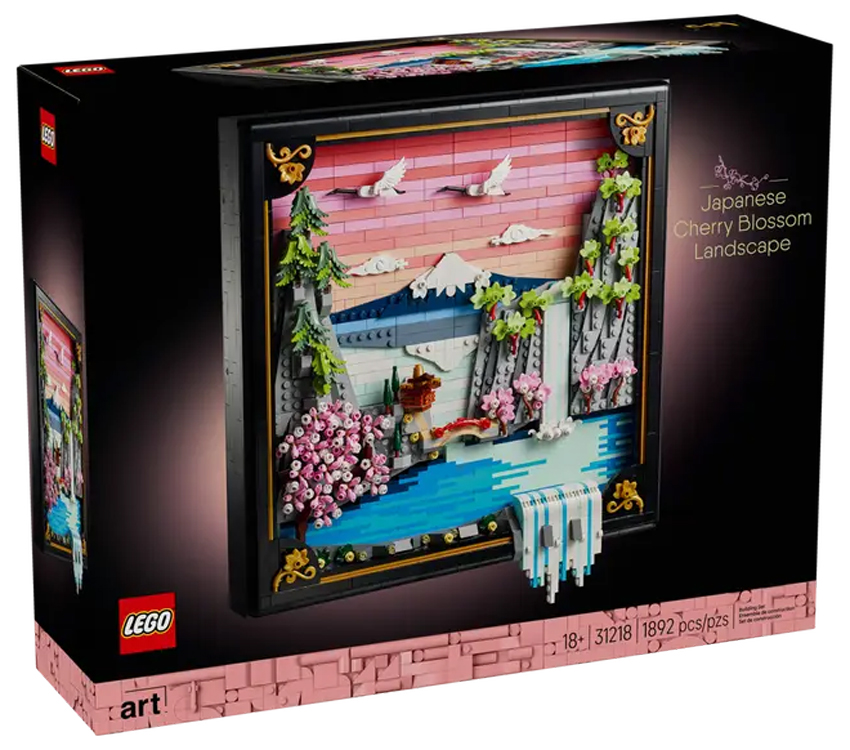 Description éditeur : Ajoutez une touche de nature colorée à votre intérieur avec Les cerisiers en fleurs LEGO Art (31218) pour adultes. Inspiré de la splendeur du printemps japonais et des artistes Ukiyo-e, ce superbe tableau mural 3D en briques représente le mont Fuji, une maison de thé, un pont, une cascade, des grues en vol, des cerisiers en fleurs, des érables « Sango-Kaku » et des pins parasols. Cette décoration est rehaussée d’un cadre laqué noir et peut être exposée de 2 façons : au mur, à l’aide du crochet, ou posée sur une surface plane. La cascade sort du cadre et peut ainsi couler tout droit si le tableau est accroché au mur, ou se déverser sur une surface s’il est posé. En construisant ce tableau botanique artistique avec des briques LEGO, les adultes vivent en pleine conscience une expérience immersive et apaisante. Cadeau d’inspiration japonaise à s’offrir ou à offrir aux amateurs d’art, le modèle inclut des instructions qui vous guideront dans cette activité créative. Contient 1 892 pièces.