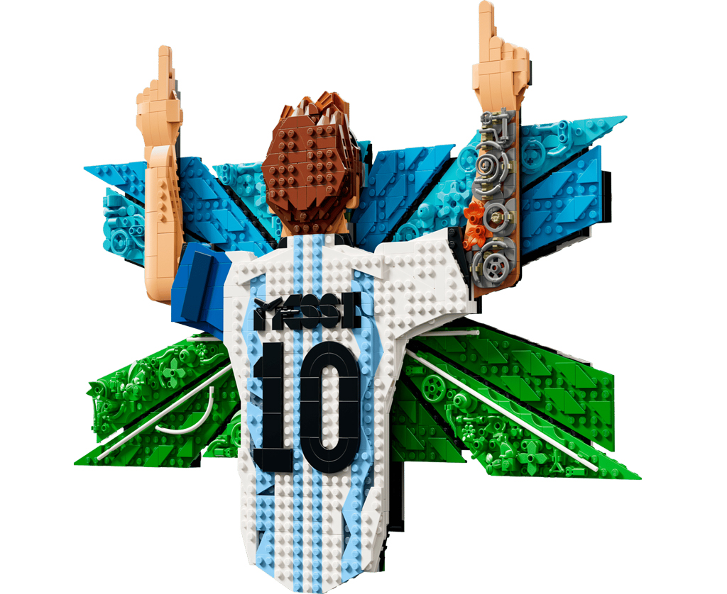 – Savourez un projet immersif en construisant Lionel Messi dans sa pose de victoire signature, les doigts pointés vers le ciel, se détachant sur fond de ciel et de terrain