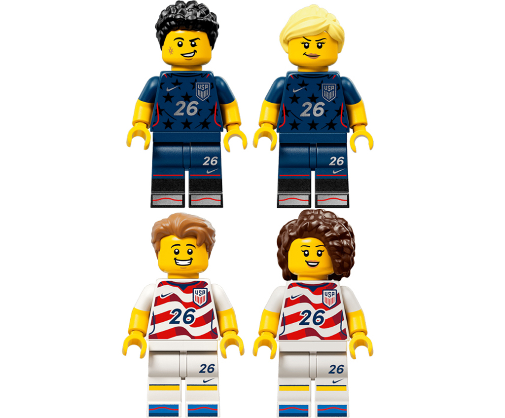 - Le kitinclut 2 minifigurines de foot : l’une porte les rayures de l’équipe et l’autre les étoiles, et des options pour la tête et les cheveux permettent de les personnaliser
