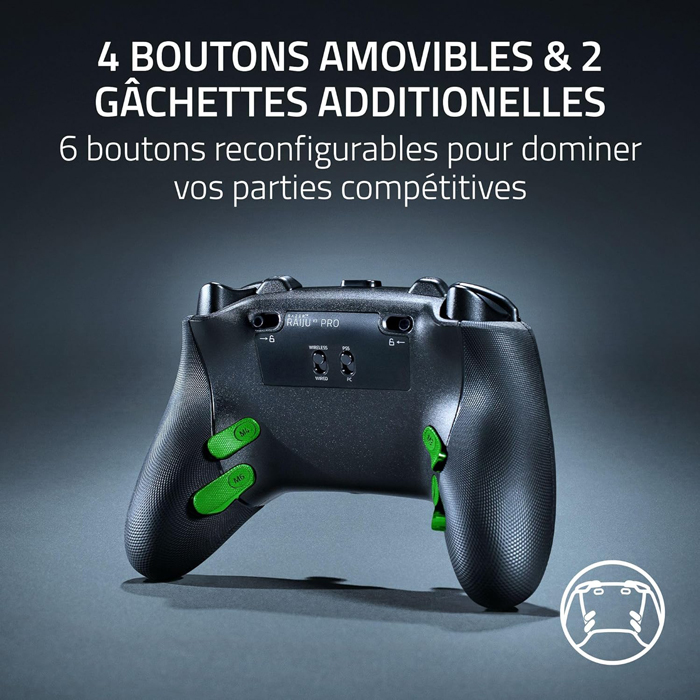 - Personnalisation de niveau professionnel - via l'application mobile Razer et Synapse 4: Réglez la sensibilité de votre stick, enregistrez jusqu'à 4 profils, remappez 6 boutons programmables et bien plus encore. Calibrez n'importe quel paramètre à partir de votre téléphone ou de votre PC.