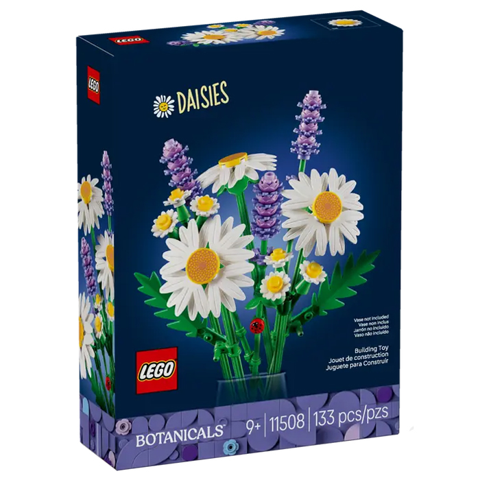 Description éditeur : Cultivez l’imagination des jeunes jardiniers avec le set de construction Marguerites LEGO Botanicals (11508) pour les fans. Filles et garçons vont adorer créer le bouquet champêtre composé de 3 grandes marguerites, 2 tiges de petites marguerites, 3 brins de lavande et des tiges vert vif. Inspirant à la fois la joie et la sérénité, ce ravissant bouquet LEGO présente des fleurs réalistes et une adorable coccinelle porte-bonheur sur l'une des tiges, un détail qui ne manquera pas de ravir les jeunes constructeurs. Une fois terminé, les fans peuvent exposer le bouquet de fleurs LEGO dans leur chambre ou sur leur bureau : pas besoin de l’arroser, il ne fanera jamais ! Joli cadeau à offrir aux fans pour un anniversaire ou une occasion spéciale, ce bouquet LEGO est aussi un cadeau de pendaison de crémaillère amusant qui durera pendant des années et ravira les amateurs de fleurs de tous âges. Contient 133 pièces.