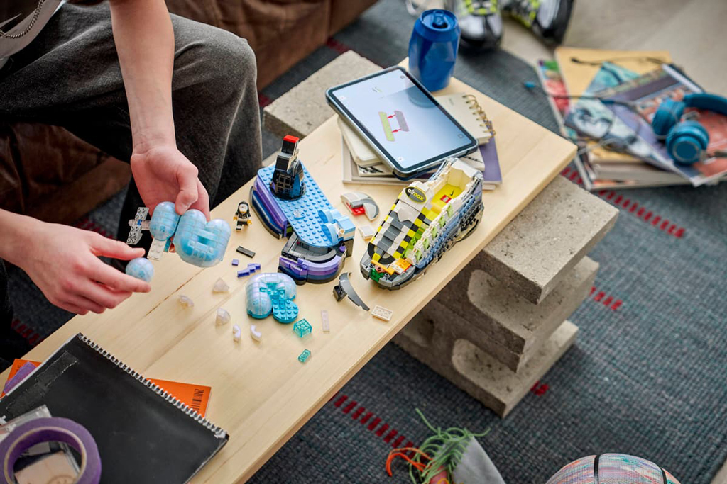 – Les détails incluent une minifigurine avec tête personnalisable portant une tenue et des sneakers Nike, ainsi qu’un tiroir caché dans la base du modèle pour ranger de petits objets