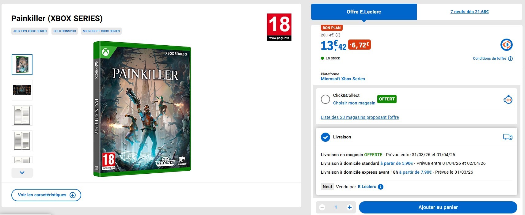 Le jeu Painkiller sur Xbox est en promo à 15€ sur Micromania (au lieu de 40€ lors de sa sortie)