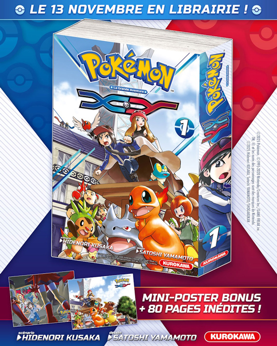 Description : En route pour la région de Kalos pour une nouvelle grande aventure pleine de rebondissements ! X et ses quatre amis d'enfance mènent une vie tranquille à Bourg Croquis, jusqu'au jour où apparaissent les Pokémon légendaires Yveltal et Xerneas, bouleversant le quotidien des jeunes gens. Qui sont ces personnes malveillantes vêtues de rouge ? Qu'est-ce que la Méga-Évolution ? Ce sera à nos cinq amis de le découvrir dans cette nouvelle grande aventure palpitante ! Découvrez la région de Kalos avec cette adaptation en manga des jeux Pokémon X et Pokémon Y !
