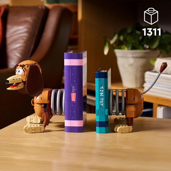– Cet ensemble rend hommage à Zigzag, le teckel de Toy Story, qui peut se présenter de 2 façons : entier ou séparé en deux pour servir de serre-livres