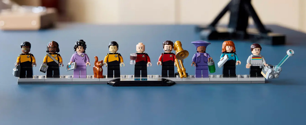 - Un casting de personnages iconiques – Inclut les minifigurines de Jean-Luc Picard, William Riker, Worf, Data, Beverly Crusher, Geordi La Forge, Deanna Troi, Guinan et Wesley Crusher