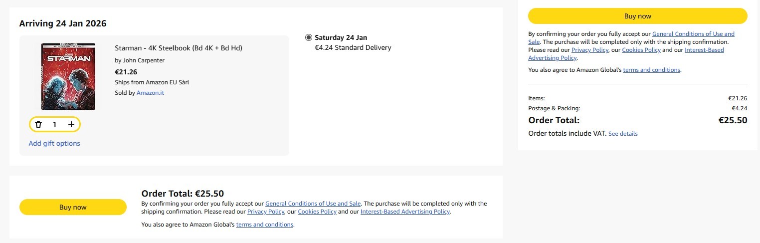 Pour rappel, le steelbook du film Starman (1985) en blu-ray 2K+4K est sorti officiellement aujourd'hui