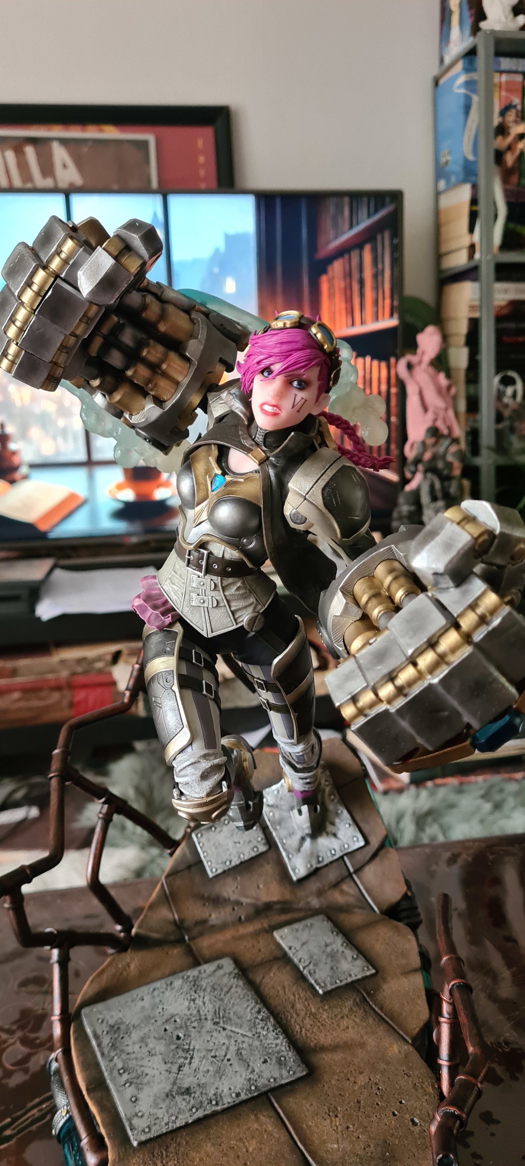 Description éditeur : Entrez dans l'univers captivant de League of Legends avec cette impressionnante statuette de Vi, fabriquée avec maestria par Pure Arts. Conçue pour les amateurs du célèbre jeu vidéo et les collectionneurs d'objets d'art uniques, cette figurine limitée incarne la force et l'audace de Vi, la célèbre Cogneure de Piltover, avec une fidélité et un réalisme étonnants. Représentée dans une posture dynamique et imposante, Vi est prête à l'action avec ses emblématiques gantelets Hextech. Mesurant environ 40 cm de haut, cette statuette saisit toute l'intensité du personnage. Chaque aspect de sa tenue, depuis les éléments mécaniques jusqu'aux détails de son armure, est reproduit avec une précision minutieuse, reflétant son rôle de protectrice inflexible de Piltover.