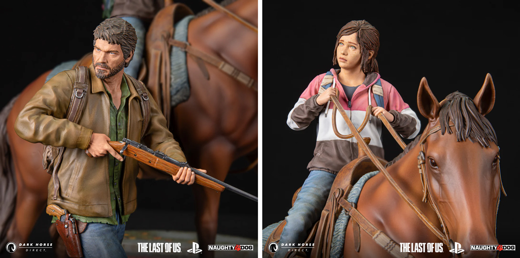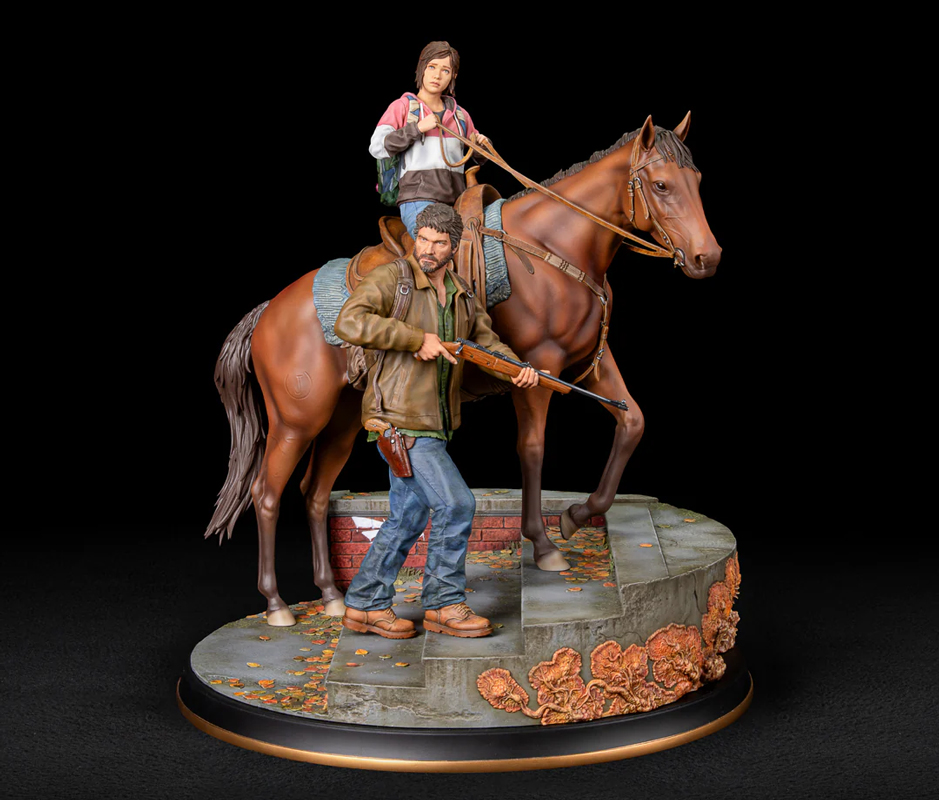 Statuette résine de Joel et Ellie à cheval dans le jeu The Last of Us
