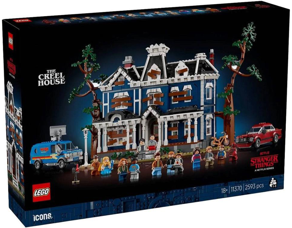 Description éditeur : Plongez dans le Monde à l’envers avec le set LEGO Icons Stranger Things : la Maison Creel (11370) pour adultes. Cette réplique détaillée de l’effrayant manoir gothique inclut la voiture de Steve, le fourgon radio WSQK et le vélo de Will. La maison présente une façade décorée et l’arrière ouvert permet d’accéder à l’entrée, à la salle à manger, au salon, aux chambres d’Alice et d’Henry, au couloir de l’étage et aux 2 greniers. Parfait pour les adultes fans de sets LEGO et collectionneurs de produits Stranger Things, ce modèle inclut 13 minifigurines : Will, Mike, Lucas, Dustin, Vecna, M. Whatsit, Holly, Steve, Nancy, Robin, Jonathan, Max et Onze. Barricadée ou non, la maison est un objet décoratif captivant dont les angles s’étirent pour dévoiler le Repaire mental interdimensionnel de Vecna.