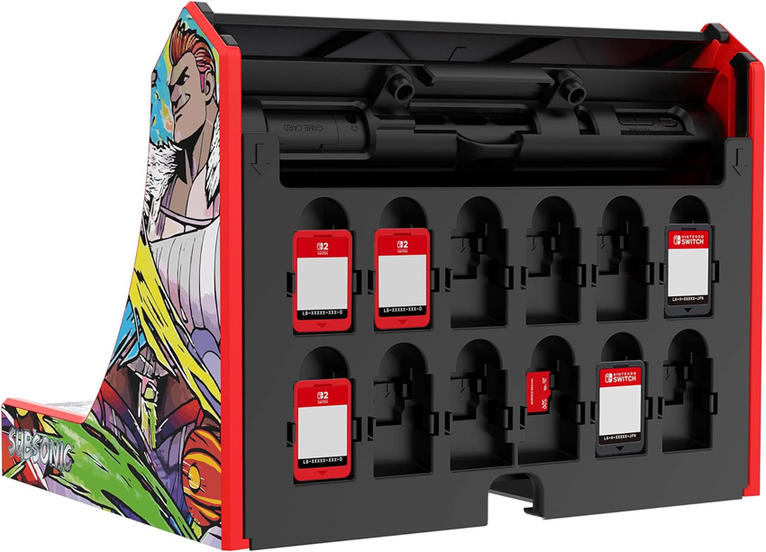 Description éditeur : Transformez votre Nintendo Switch 2, Switch OLED ou Switch en véritable borne d’arcade et replongez dans les années 80 depuis votre salon ! La mini-borne Retro Arcade de Subsonic transforme votre console en borne d’arcade. Pour cela, placez votre console Switch, ou Switch 2 ou Switch OLED dans l’adaptateur fourni. Ensuite, glisser l’adaptateur dans la borne et le tour est joué ! C’est l’écran de votre console qui fait office d’écran pour la borne d’accueil. Pratique et élégante, elle est munie d’un joystick à 8 directions, de 8 boutons arcade réactifs et d’un rangement malin pour 12 cartouches de jeux. Retrouvez l’expérience arcade authentique directement chez vous. Console Nintendo, accessoires et jeux non inclus. Taille du produit : 22 cm de largeur, 17 cm de hauteur et 19 cm de profondeur. Produit garanti 2 ans livré dans console Nintendo et sans jeux.