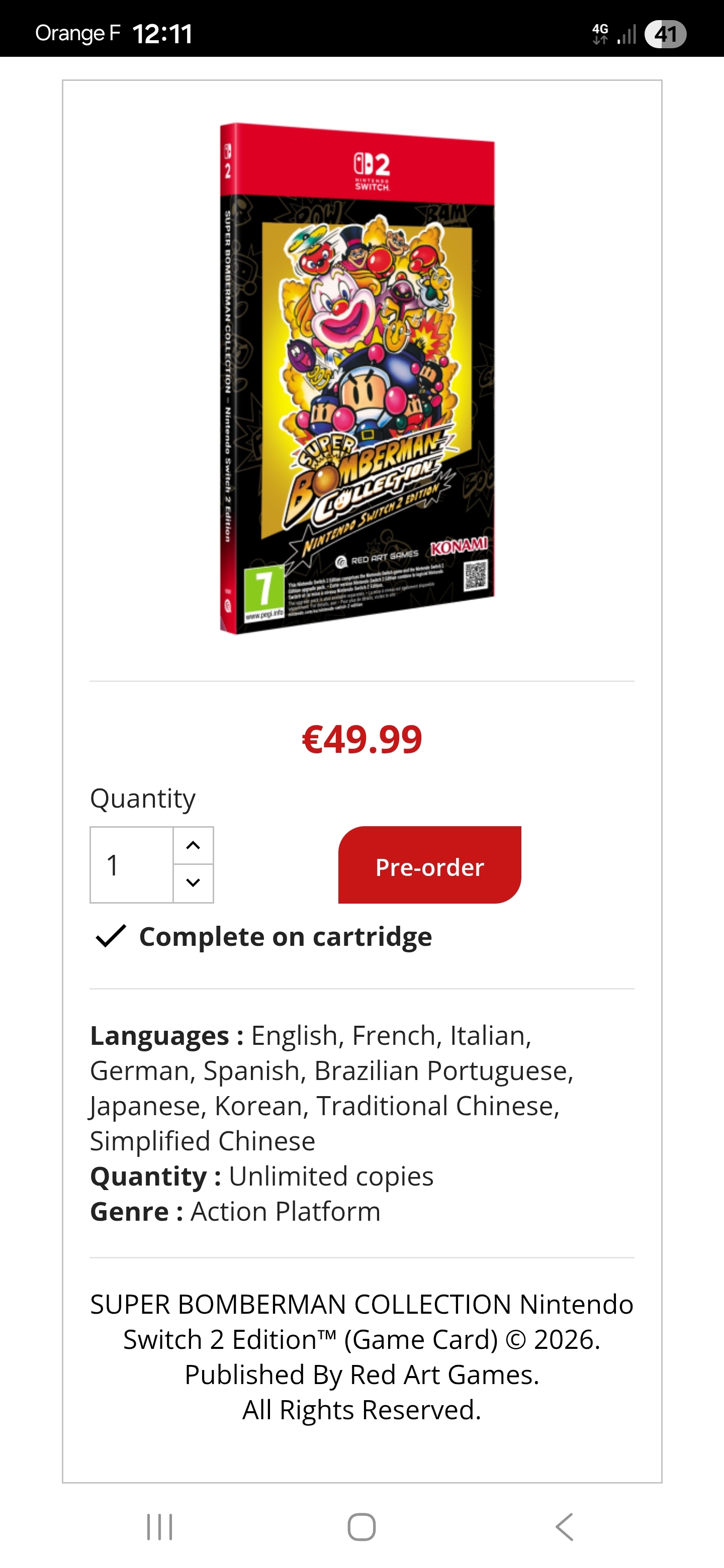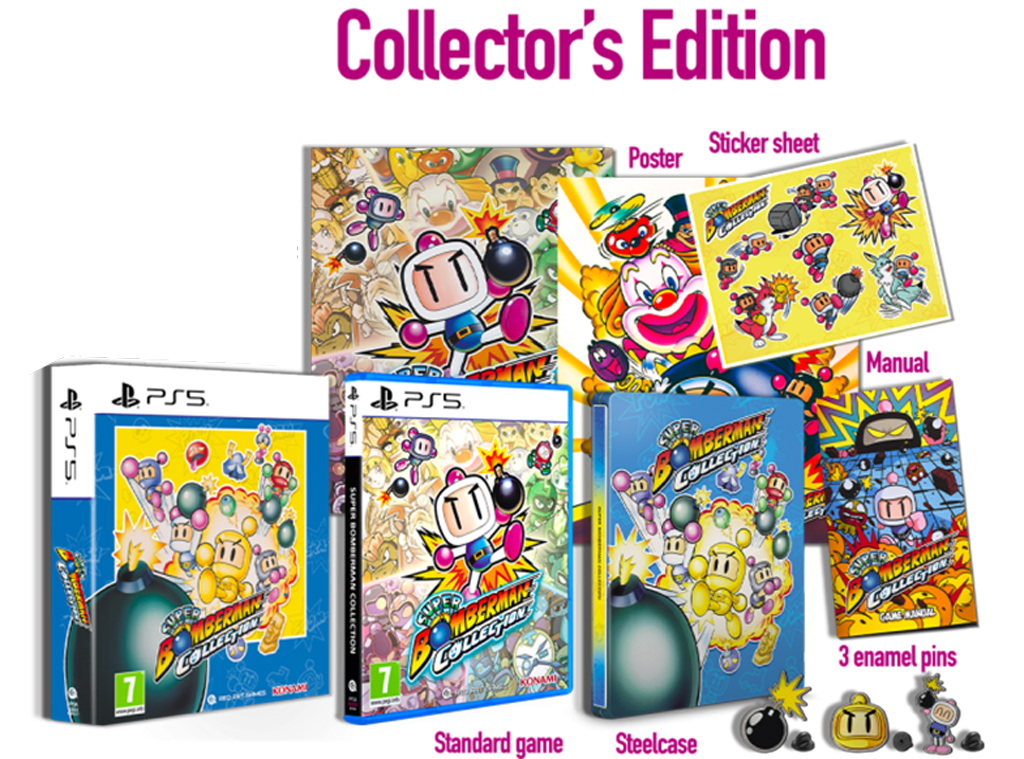 Description éditeur : Le party game « SUPER BOMBERMAN » est désormais disponible dans une collection regroupant 7 titres pour un total de 12 versions issues des régions Japon, Europe et États-Unis, incluant enfin les versions localisées tant attendues des inédits SUPER BOMBERMAN 4 et 5 !