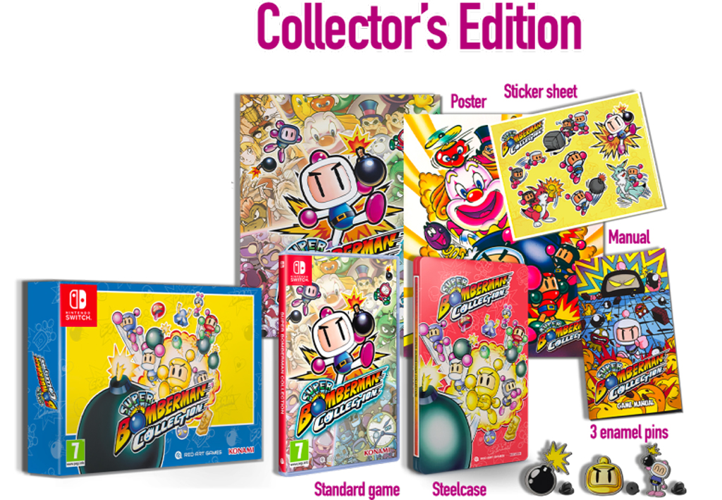 Description éditeur : Le party game « SUPER BOMBERMAN » est désormais disponible dans une collection regroupant 7 titres pour un total de 12 versions issues des régions Japon, Europe et États-Unis, incluant enfin les versions localisées tant attendues des inédits SUPER BOMBERMAN 4 et 5 !