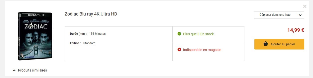 Pour rappel, le film Zodiac sort mercredi prochain pour la première fois en blu-ray 4K en France (résumé des précommandes juste en dessous sur la fiche)